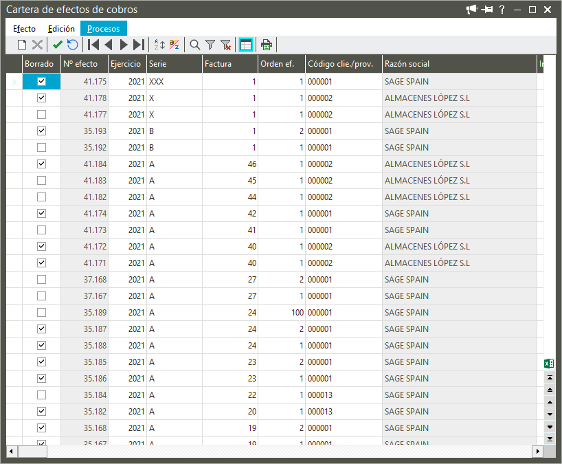 Cartera de efectos. Gestiona la cartera de Cobros y Pagos con opciones para la creación de remesas a bancos. Gestión de impagados con emisión de cartas de reclamación y tratamiento de gastos generados. Adaptada a la normativa SEPA, incorpora los nuevos formatos de remesas y la gestión de mandatos.