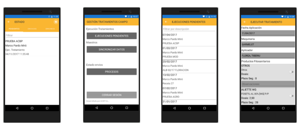 Mediante este conjunto de funcionalidades es posible gestionar todo el proceso de aplicación de tratamientos fitosanitarios en el campo: