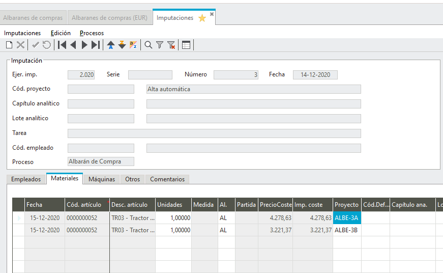 Mediante las funcionalidades de control de gastos en el campo es posible repartir automáticamente los costes entre los centros de coste establecidos en base a las superficies de las parcelas.