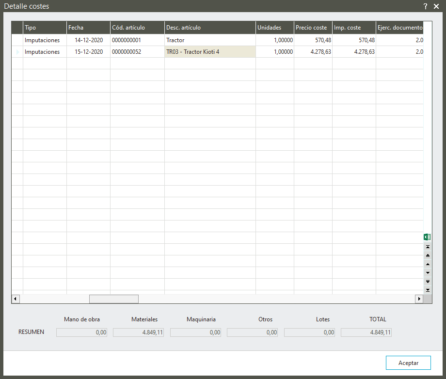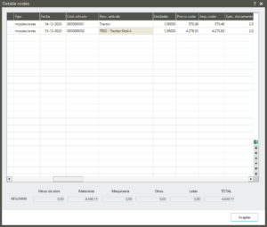 • Actualiza automáticamente los costes en función de las horas dedicadas y del parcelario.