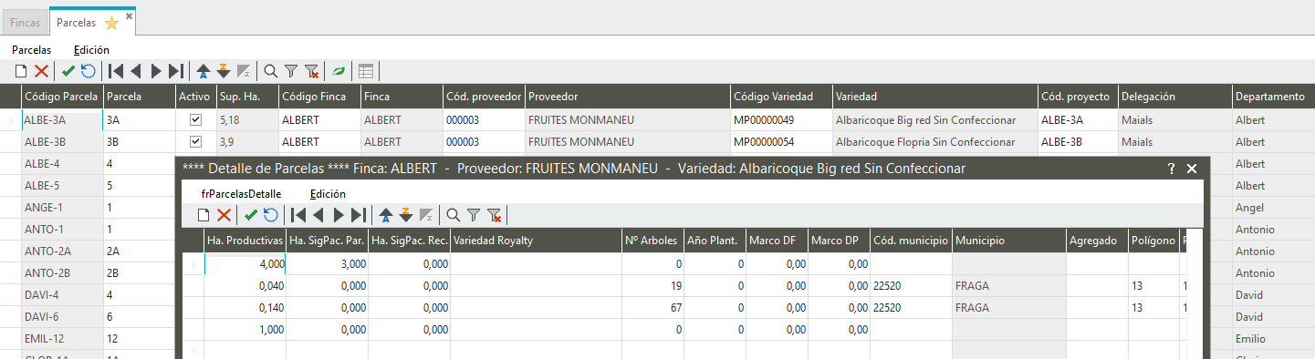 Gestión completa del parcelario en el que se dividen las fincas productivas facilitando toda la gestión que se realiza sobre el campo:
