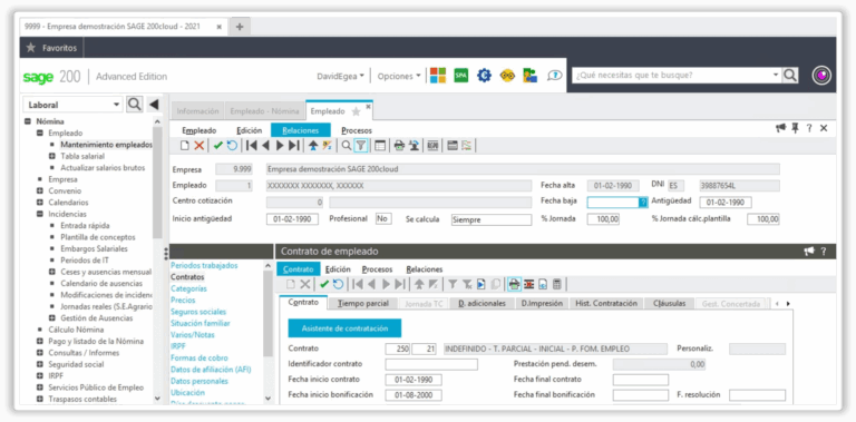 Gestiona los empleados y la empresa de forma simplificada con un código único de empleado y una gestión abierta: multi-ejercicio, multi-empresa, multi-centro de cotización, multi-convenio centro de información del empelado.